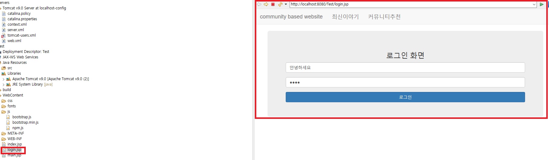 -http 404 메시지 나옴(아직 옮겨갈 페이지 login.jsp가 없다는 의미)