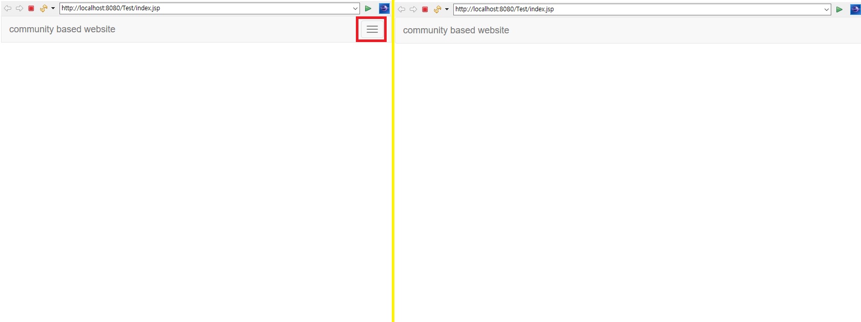 화면을 줄이면 아이콘 세 개 적용한 메뉴바 출력