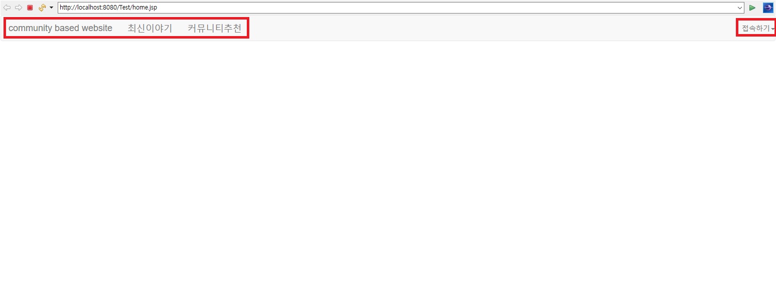 5. 탑메뉴에 최신이야기 및 커뮤니티추천 그리고 우측상단버튼에 접속하기만 있도록 할 것