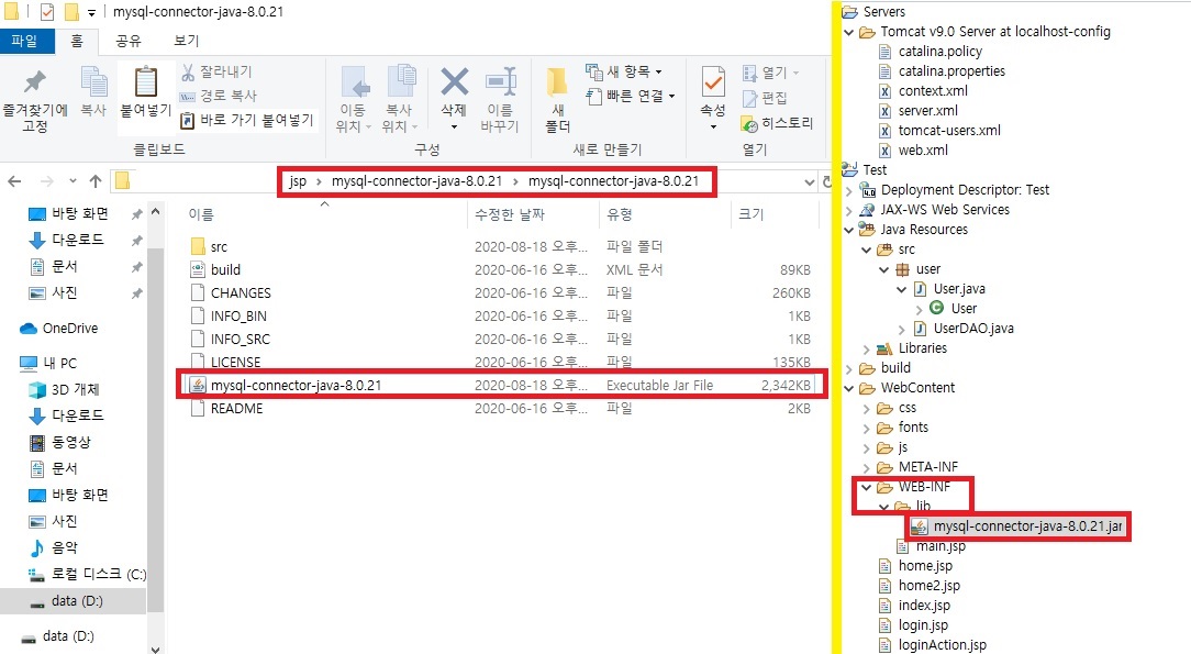 사진2(mysql 커넥터 압축풀기 및 복사하여 붙여넣기)