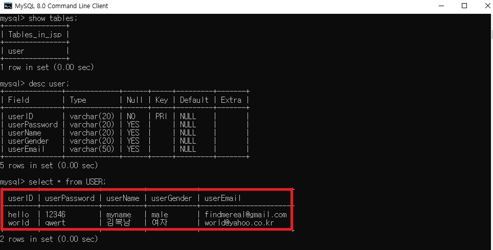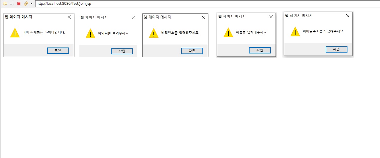 5. 회원가입 화면 출력 및 각각의 상황에 맞는 메시지 출력확인