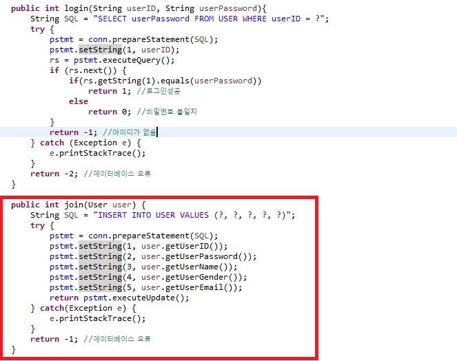 1. userDAO클래스에 추가적으로 회원가입을 시도하는