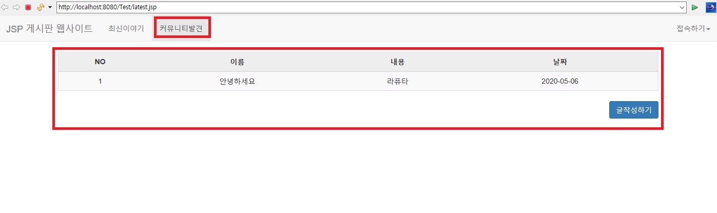 커뮤니티발견(게시판) 화면 완료