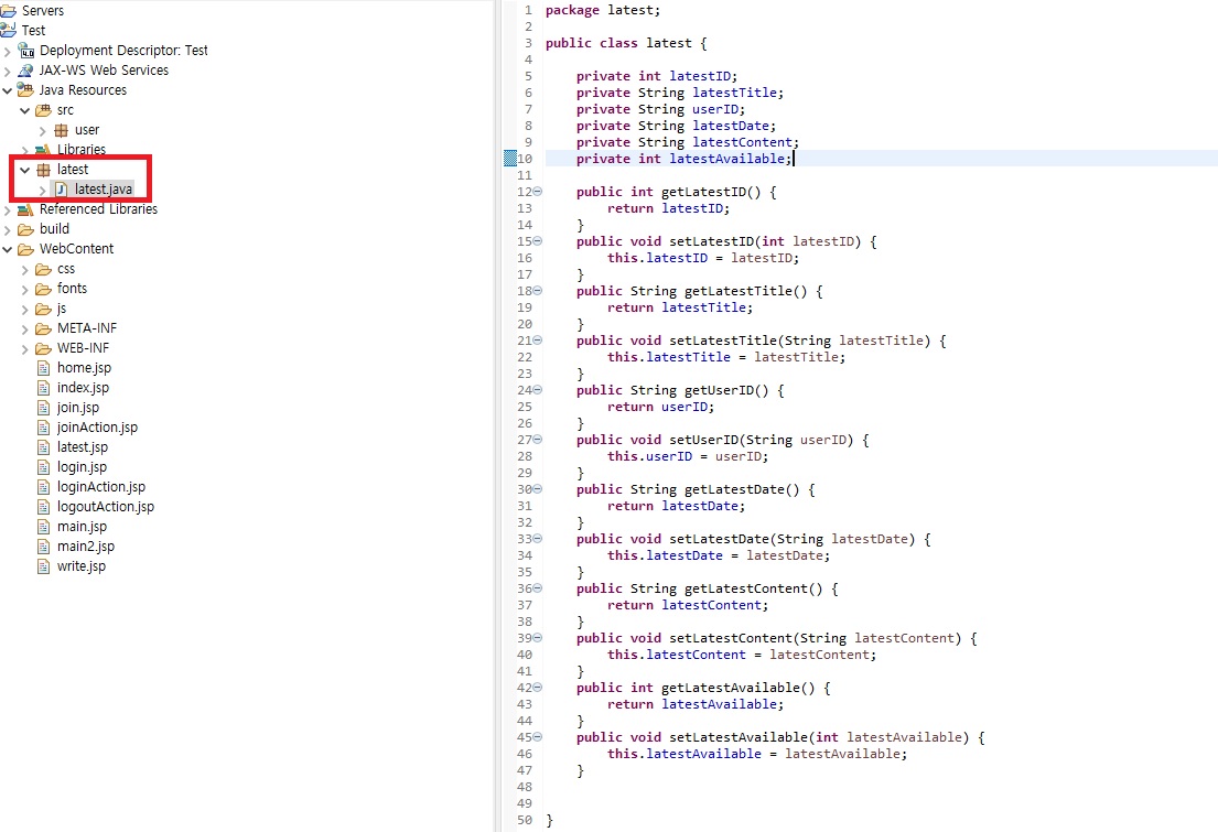 2. latest 패키지를 생성하고 javabeans 클래스를 만들어준다.