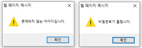 8.로그인 성공 그리고 각각의 상황에 맞는 메시지가 나온다.